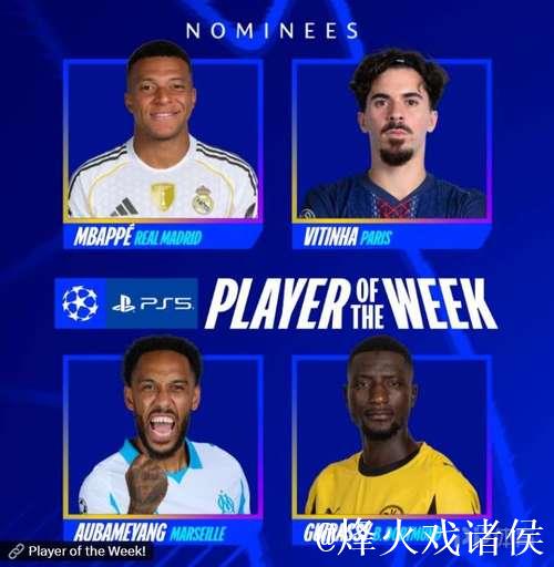 >姆巴佩领衔欧冠本轮最佳球员候选名单:维蒂尼亚、吉拉入选